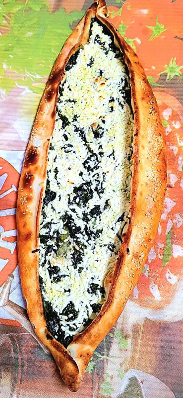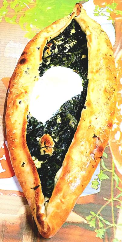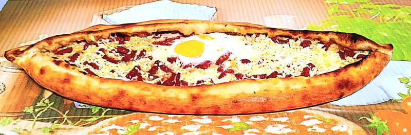 27. Pide mit Knoblauchwurst, Weichkäse, Ei
